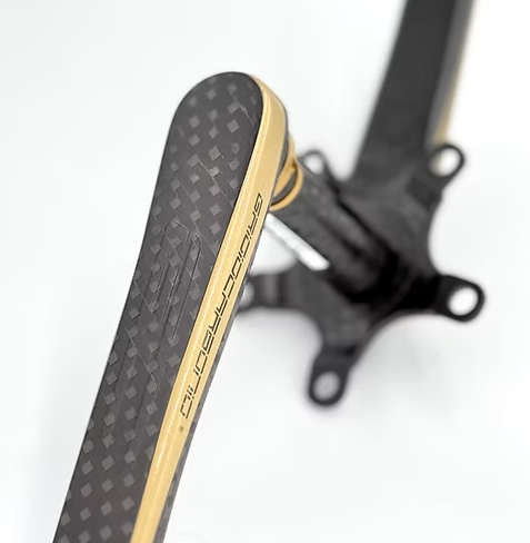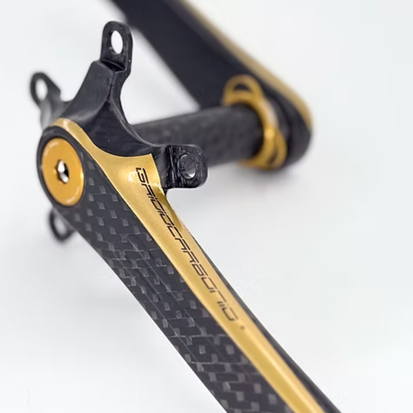 Die GrigioCarbonio Road T1000 mit 110 mm Lochkreis (BCD) und einem Gewicht ab nur 239 Gramm (Kurbelgarnitur + Achse + Befestigungsmaterial) sind die leichtesten und fortschrittlichsten Rennrad-Kurbelgarnituren der Welt, aber dank der sorgfältigen Konstruktion sowie der hochwertigen Materialien und Verarbeitung auch äußerst steif und zuverlässig. Komplett aus T1000-Kohlefaser gefertigt.